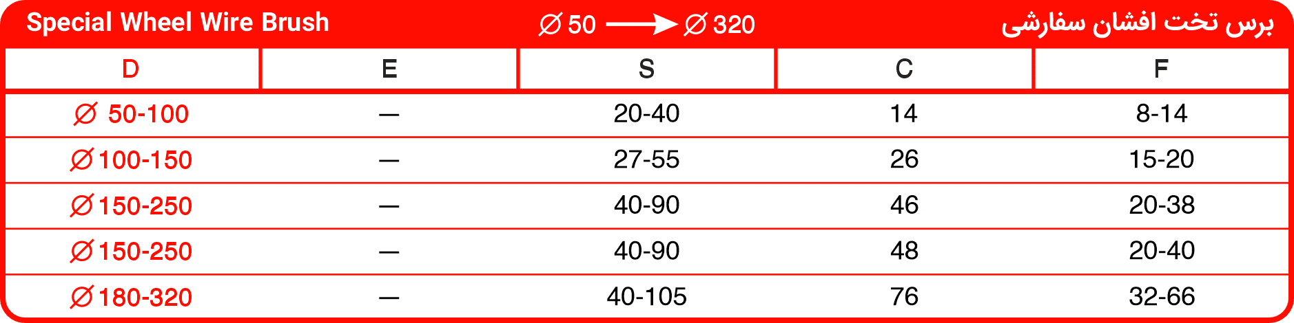 ﺑﺮسﻫﺎی ﺗﺨﺖ اﻓﺸﺎن ﺳﻔﺎرﺷﯽ ﺑﺎ ﺗﺮاﮐﻢ دﻟﺨﻮاه، ﻗﻄﺮ ۰۵ ﺗﺎ ۰۲۳ ﻣﯿﻠﯽﻣﺘﺮ، و اﻧﻮاع ﻣﻔﺘﻮلﻫﺎی ﻧﺮم، ﺿﺨﯿﻢ، ﭘﺮداﺧﺖﮐﺎری، ﺧﺸﻦﮐﺎری، اﺳﺘﯿﻞ، ﺑﺮﻧﺠﯽ و ﻓﻮﻻدی.