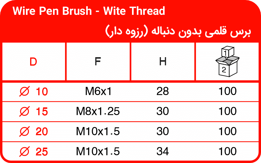 برای سفارش برس قلمی رزوه دار با مشخصات خاص، لطفاً به کاتالوگ مراجعه کرده و فرم مشخصات فنی را تکمیل نمایید.