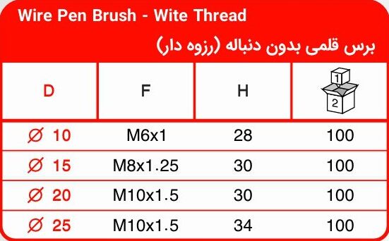 برای سفارش برس قلمی رزوه دار با مشخصات خاص، لطفاً به کاتالوگ مراجعه کرده و فرم مشخصات فنی را تکمیل نمایید.