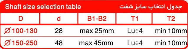 ﻫﻤﭽﻨﯿﻦ ﺑﺮای اﻧﺘﺨﺎب ﻧﻮع ﺑﺮس ﻣﺘﻨﺎﺳﺐ ﺑﺎ ﻗﻄﺮ ﺷﻔﺖ، ﺑﻪ ﮐﺎﺗﺎﻟﻮگ ﻣﺮاﺟﻌﻪ ﮐﺮده ﯾﺎ ﺑﺎ ﺷﺮﮐﺖ ﺗﻤﺎس ﺣﺎﺻﻞ ﻧﻤﺎﺪ. ﺑﺎ ﺗﻮﺟﻪ ﺑﻪ ﻗﻄﺮ ﺑﯿﺮوﻧﯽ ﺑﺮس و ﻃﻮل ﻣﺆﺛﺮ ﻣﯽﺗﻮاﻧﯿﺪ اﺑﻌﺎد ﻧﻬﺎﯾﯽ ﺷﻔﺖ را ﺑﺮ اﺳﺎس ﺟﺪول ﻣﺮﺑﻮﻃﻪ ﻣﺤﺎﺳﺒﻪ ﮐﺮده و ﻓﺮم ﺳﻔﺎرش را در ﺗﮑﻤﯿﻞ و ارﺳﺎل ﻧﻤﺎیید.