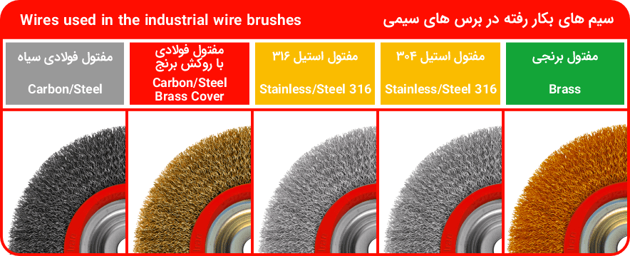 اگر بر روی سطح فلزی (فولادی یا آهنی ...) عمل برس زنی می خواهید انجام دهید باید از برس فولادی کربنی استفاده کنید.