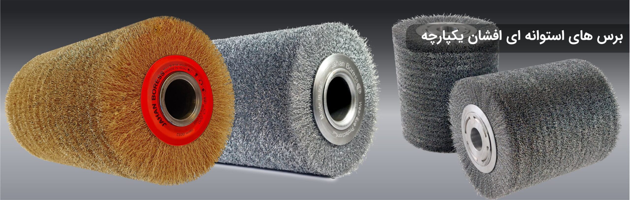 برسهای استوانهای یکپارچه از پرکاربردترین و متداولترین انواع برسهای صنعتی در خطوط تولید هستند. این برسها برای انجام عملیات سنگین و مداوم بسیار مناسباند و با ترکیبهای مختلف (از تراکم کم تا بسیار بالا) و با ساختار یکتکه و مغزی فلزی تولید میشوند.