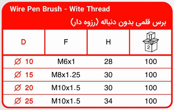 برای سفارش برس قلمی رزوه‌دار با مشخصات خاص، لطفاً به کاتالوگ مراجعه کرده و فرم مشخصات فنی را تکمیل نمایید.