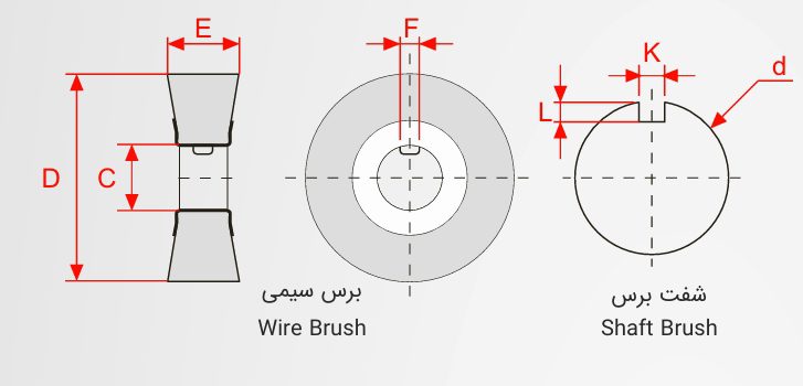 در بخش شفت، با ایجاد جای خار مخصوص، برسها بهصورت ایمن نصب میشوند. قطر کلی برس، قطر سیم، و ترکیب سیمها مطابق با درخواست مشتری قابل تنظیم است.