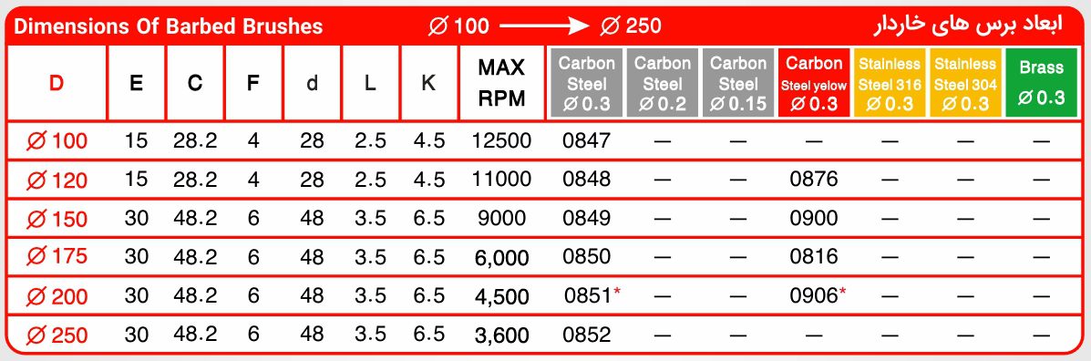 با توجه به قطر بیرونی برس، نوع کاربرد و ابعاد داخلی لوله، نوع برس مناسب را انتخاب کنید.