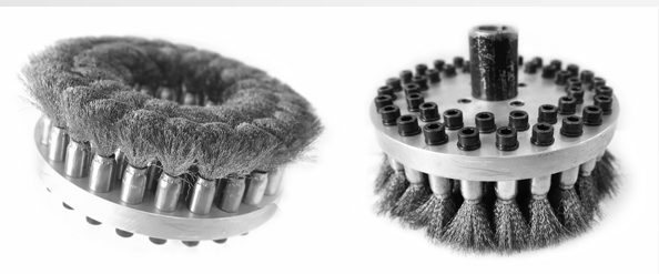 یکی از انواع متداول و پرکاربرد برس‌های صنعتی هستند که در این مدل، رشته‌های سیم به‌صورت مستقیم روی سطح صفحه‌ای (معمولاً از جنس آلومینیوم سبک) نصب می‌شوند. پس از فرسایش، این برس‌ها قابلیت باز شدن، شارژ مجدد سیم و بازیابی عملکرد را دارند.