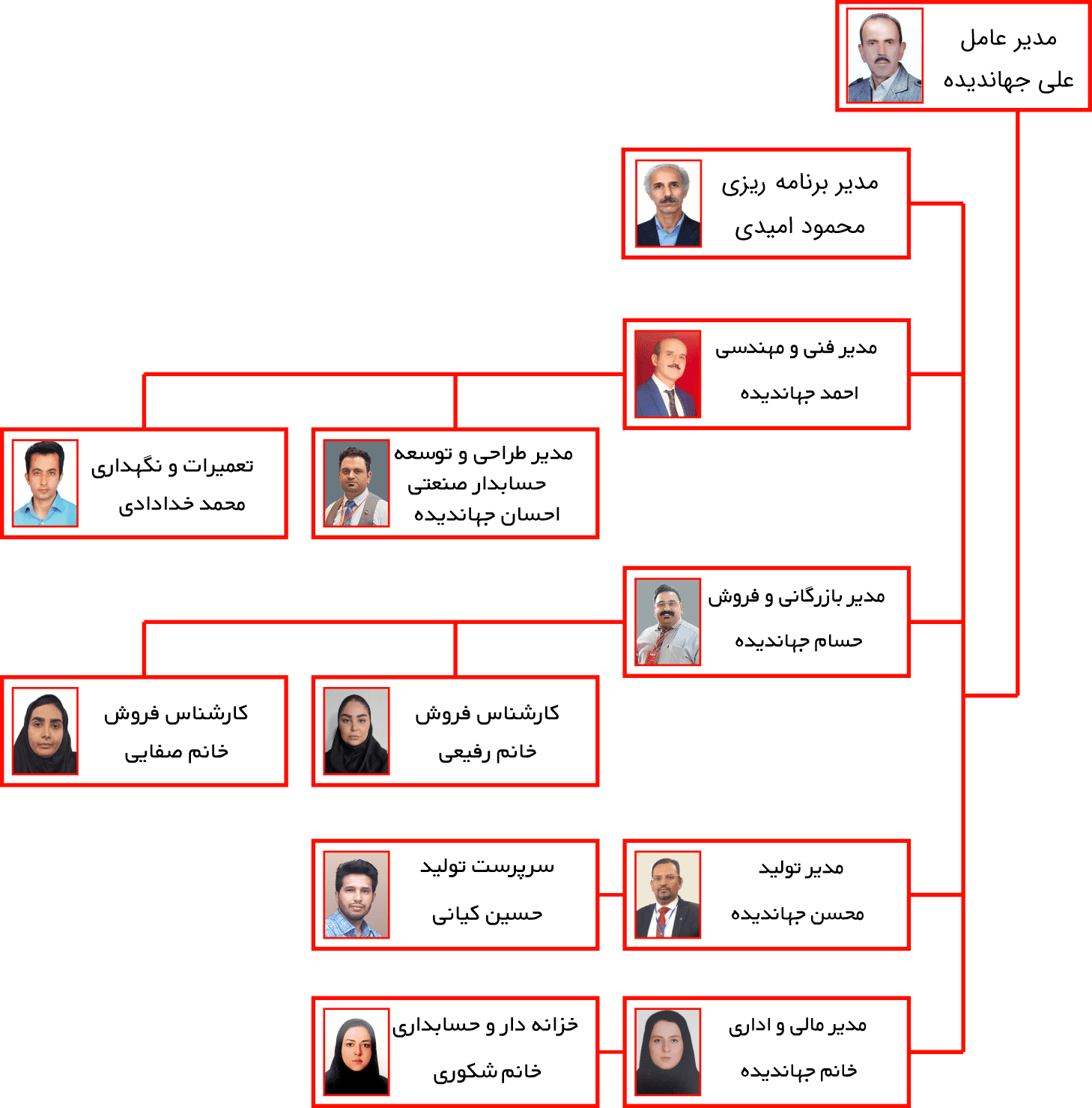 ساختار سازمانی جهانبرس با هدف هماهنگی کامل بین واحدهای طراحی، تولید، فروش و خدمات پس از فروش طراحی شده و تمامی بخشها تحت نظارت مستقیم مدیران متخصص و باتجربه اداره میشوند: