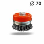 “این نوع برس به شکل کاسه ای تولید شده و به لحاظ داشتن سیم های بافته شده ، یک برس زبر و خشن محسوب می شود و در سایز های استاندارد از قطر 70 الی 125 میلی متر “این نوع برس به شکل کاسه ای تولید شده و به لحاظ داشتن سیم های بافته شده ، یک برس زبر و خشن محسوب می شود و در سایز های استاندارد از قطر 70 الی 125 میلی متر تولید و عرضه می گردد . این نوع برس ها با سیم های فولاد کربن و فولاد زنگ نزن تولید می شوند . برس کاسه ای بافته جهت پلیسه گیری ، براده برداری ، جرم گیری ، رنگ برداری ، زنگ زدایی عمیق ، خش گذاری ، تمیزکاری و … مورد استفاده قرار می گیرد . برس کاسه ای بافته به لحاظ قابلیت نصب بر روی دستگاه های قابل حمل ، مانند فرز برای کار بر روی سطوح بزرگ و ثابت و زوایای غیر قابل دسترسی مناسب می باشد. برس کاسه ای بافته برای کاربردهای خاص روی ماشین های ثابت نیز نصب می گردند . همچنین این برس قابلیت جدا شدن طوقه از برس را دارد تا در صورت اتمام سیم ها حین کار، مجدد سیمی که در زیر طوقه قرار گرفته را میتوان مجدد از آن استفاده کرد.”